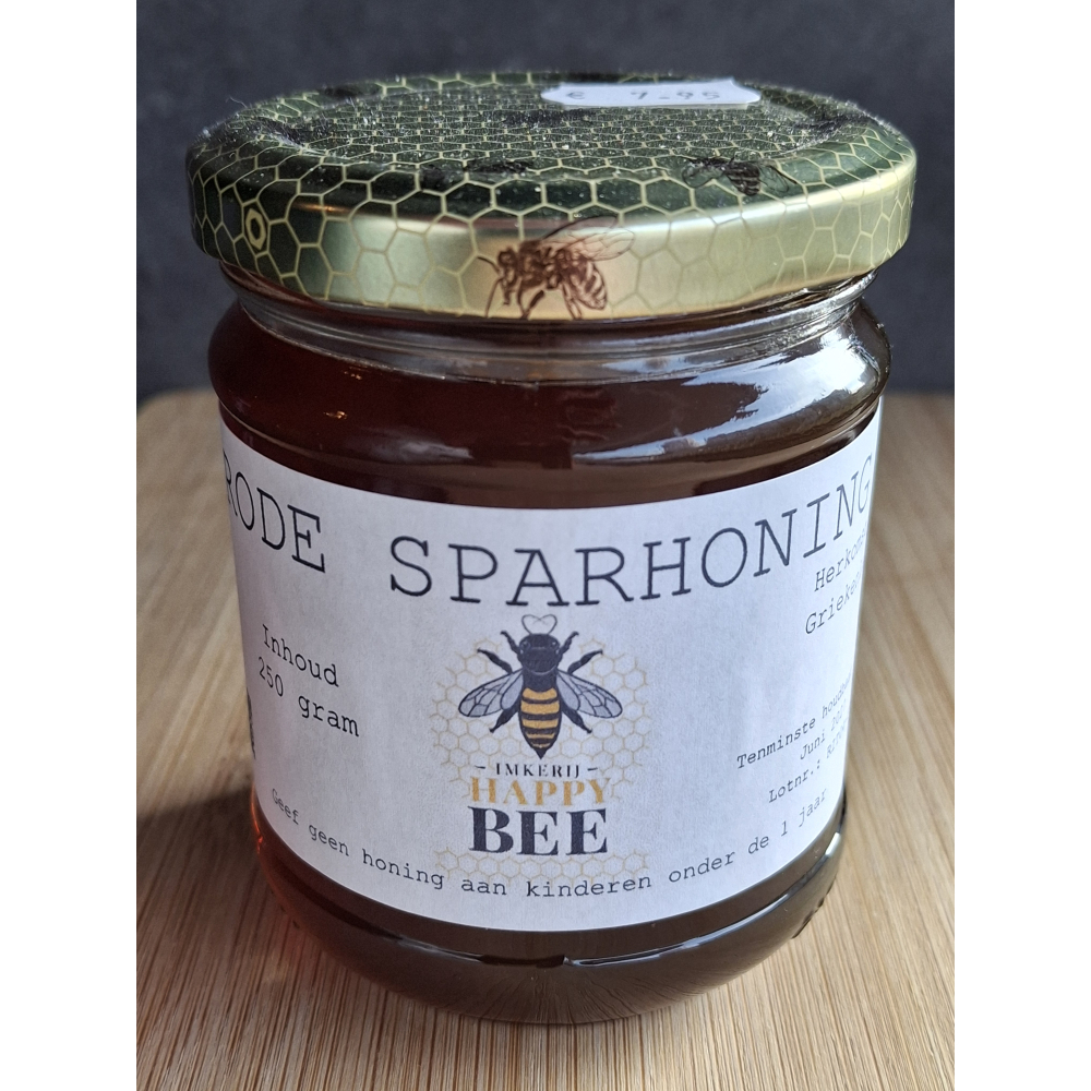 - Herkomst: De Rode Spar honing van Happy Bee komt uit Griekenland